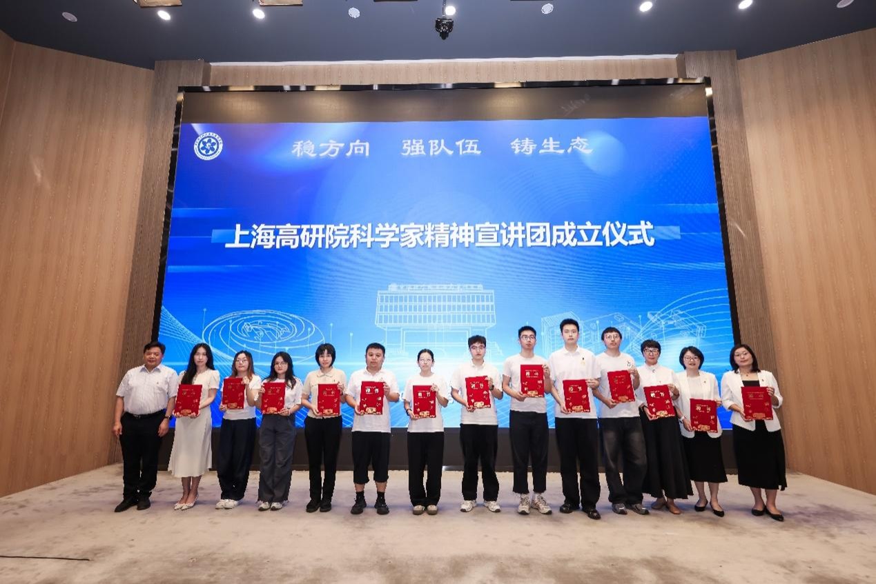 为大力弘扬科学家精神,强化创新文化建设,增强科技工作者的荣誉感和使命感,会议举行了上海高研院科学家精神宣讲团成立仪式,副院长邰仁忠宣读了宣讲团成员名单,院长、党委书记黄政仁为宣讲团成员颁发聘书。首批15名宣讲团成员主要由一线科研人员和青年学生组成,宣讲团成员将积极挖掘上海高研院“身边的科学家故事”,为弘扬科学家精神持续注入新的活力,真正当好科学家精神的讲解员、传播者、践行者。