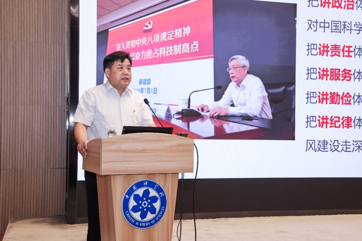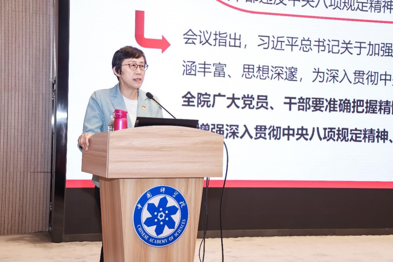 为认真贯彻落实党中央关于深入贯彻中央八项规定精神学习教育的部署要求,会上党委副书记、纪委书记唐铮作题为《绷紧纪律之弦 筑牢自律之堤》的深入贯彻中央八项规定精神学习教育警示教育专题报告。报告重点传达了中国科学院警示教育会精神,通报了近年来中国科学院查处的党员干部违反中央八项规定精神典型案例并进行深刻剖析,以案说德、以案说纪、以案说法、以案说责,用身边事教育身边人,让广大党员干部知敬畏、存戒惧、守底线。同时,坚持开门教育,向与会人员通报了上海高研院问题清单整改落实情况。