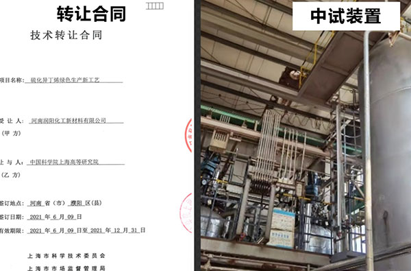 已建成4000 t/年的中试生产装置,产品通过多家知名添加剂公司技术准入认可并形成稳定生产,创造了良好经济效益,目前正在合作开展含硫添加剂系列产品研发,已获得河南省产业联合基金重大项目支持。