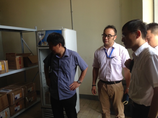 随后,安全工作检查小组前往监控室了解园区内保安24小时监控的日常工作情况,对监控、电子围栏的使用提出了具体要求,之后至危险品仓库实地了解危险品的储存及废液的回收情况,最后至实验室和生物医药基地施工现场进行了安全检查。