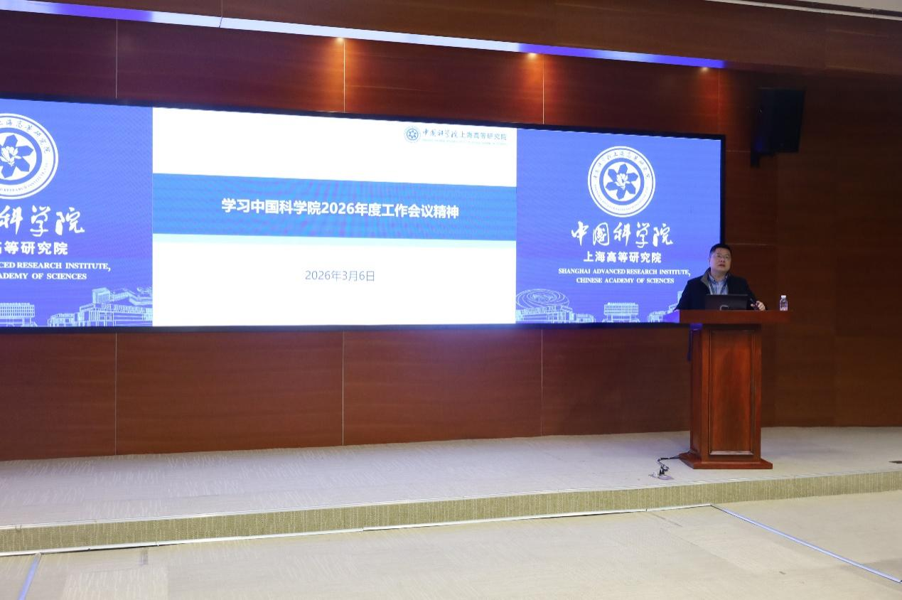 陈丰伟传达了中国科学院2026年度工作会议精神,重点解读了侯建国院长所作的《勇担国家战略科技力量主力军使命重任 奋进科技强国新征程》工作报告。陈丰伟指出,2026年是“十五五”规划的开局之年,也是中国科学院向全面实现“四个率先”目标发起决胜冲刺的关键之年。上海高研院党委将严格按照院党组部署要求,扎实开展树立和践行正确政绩观学习教育,坚定信心、勇毅前行,奋力在关键核心技术攻关中抢占制高点。