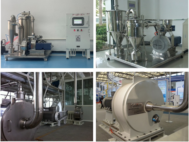 突破传统机械粉碎的结构模式,研发了新型的多级气旋特殊结构形成高度湍流对撞,使得粉体颗粒在高速运行时颗粒与颗粒之间产生自身爆破式的粉碎,在无分级情况下实现粉体材料的微纳米化;突破传统机械粉碎加分级工艺,采用新型无分级制粉工艺,一次性连续出粉,简化工艺的同时节约了能耗。目前已成功研制实验室90型、实验室160型、工业级550型、工业级1080型商业样机,可广泛应用于药材、食品、煤粉、珍珠、矿石、塑料等的超微粉碎领域。