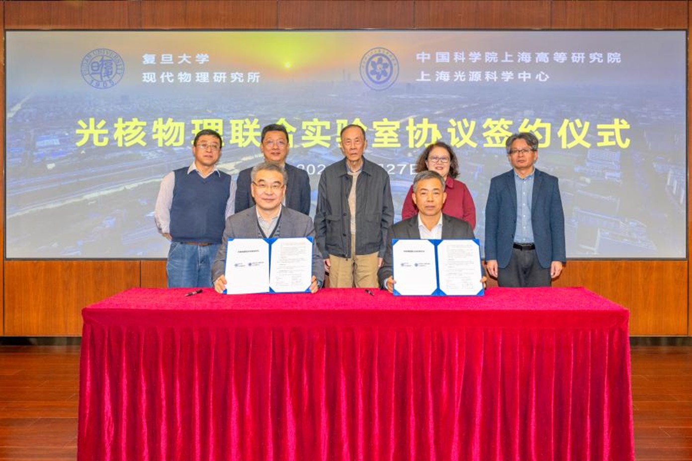2025年11月27日,中国科学院上海高等研究院(以下简称“上海高研院”)上海光源科学中心与复旦大学现代物理研究所举行“光核物理联合实验室”签约仪式。联合实验室将聚焦光核物理前沿领域,结合复旦大学现代物理研究所在核物理学科方向的优势与上海光源科学中心在大科学装置方面的平台优势,强强联合,推动我国光核物理基础研究与技术应用方面的创新发展。上海光源科学中心沈文庆院士、赵振堂院士,上海高研院副院长邰仁忠、复旦大学副校长马余刚院士、复旦大学现代物理研究所所长方德清等双方单位代表出席了签约仪式。
