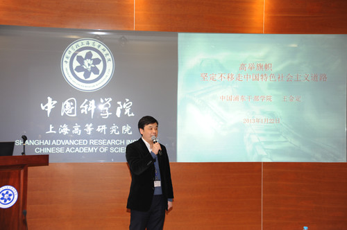 2013年1月22日,为深入学习和贯彻落实党的十八大精神,中科院上海高等研究院(以下简称高研院)机关二支部特邀请中国浦东干部学院副院长王金定教授做了题为“高举旗帜 坚定不移走中国特色社会主义道路”的报告。高研院党委副书记、纪委书记王立根,机关副处以上党员、机关二支部、中心五支部全体党员及积极分子参加了报告会,本次报告会由机关二支部书记陈晓东主持。