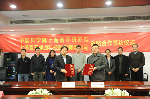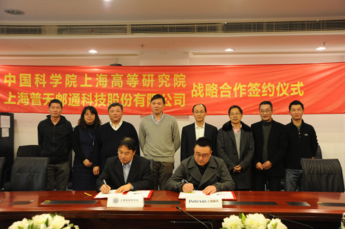 2013年2月22日,中国科学院上海高等研究院和上海普天邮通科技有限公司正式签订了战略合作协议。中国科学院上海高等研究院院长封松林、副院长黄伟光和上海普天邮通科技有限公司总裁郑建华、沈忠华共同出席签约仪。