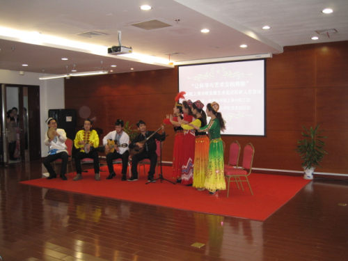 中华少数民族艺术是本次活动的主要特色。上海音乐学院的同学们为观众们带来了藏族、哈萨克族、白族、彝族、朝鲜族、蒙古族等多个少数民族的耳熟能详的民歌联唱,入选世界非物质文化遗产的蒙古族呼麦表演《满都拉汗赞》、以及国家级非物质文化遗产新疆“木卡姆”表演《乌孜哈勒木卡姆》等精彩纷呈的节目,让高研院和药物所的科研人员、管理骨干和研究生们享受了一次豪华的艺术盛宴。