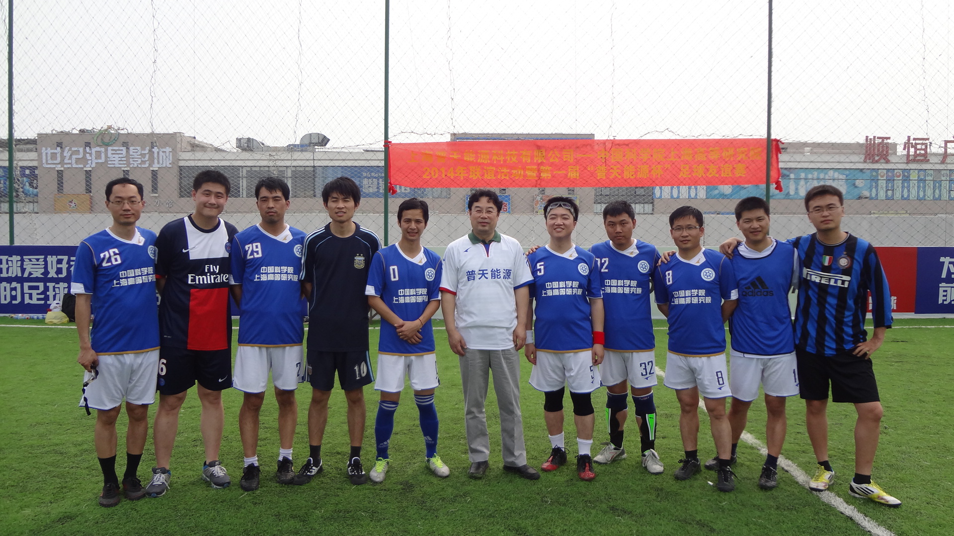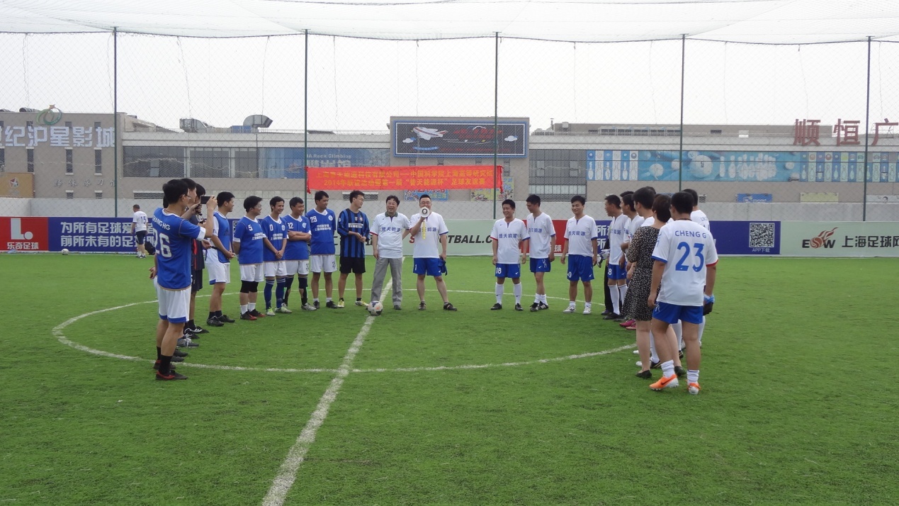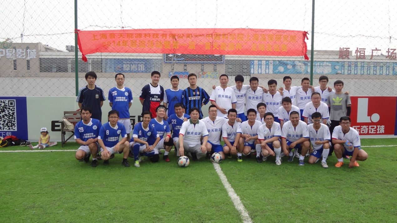 为认真贯彻落实《全民健身条例》和《全民健身计划(2011-2015)》,进一步丰富科技青年体育文化生活,倡导体育拼搏精神与科技创新精神的结合,以快乐体育为基础,充分调动中国科学院上海高等研究院及上海普天能源科技有限公司开展职工体育活动的积极性,加强单位间的相互交流,提高足球爱好者的竞技水平和综合素质,展现单位间蓬勃向上的精神风貌,上海高研院足球队与普天能源足球队于6月7日进行了 “普天中科2014年联谊活动之足球友谊赛”。