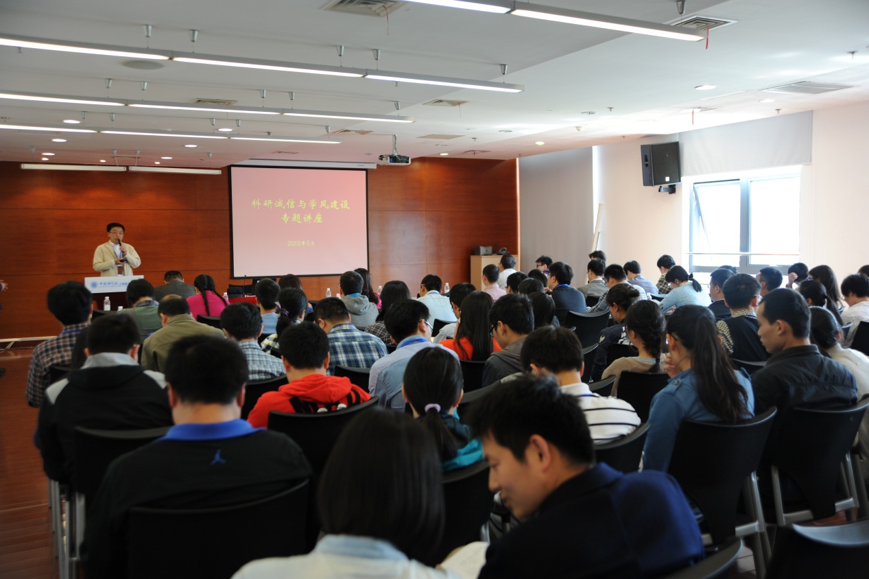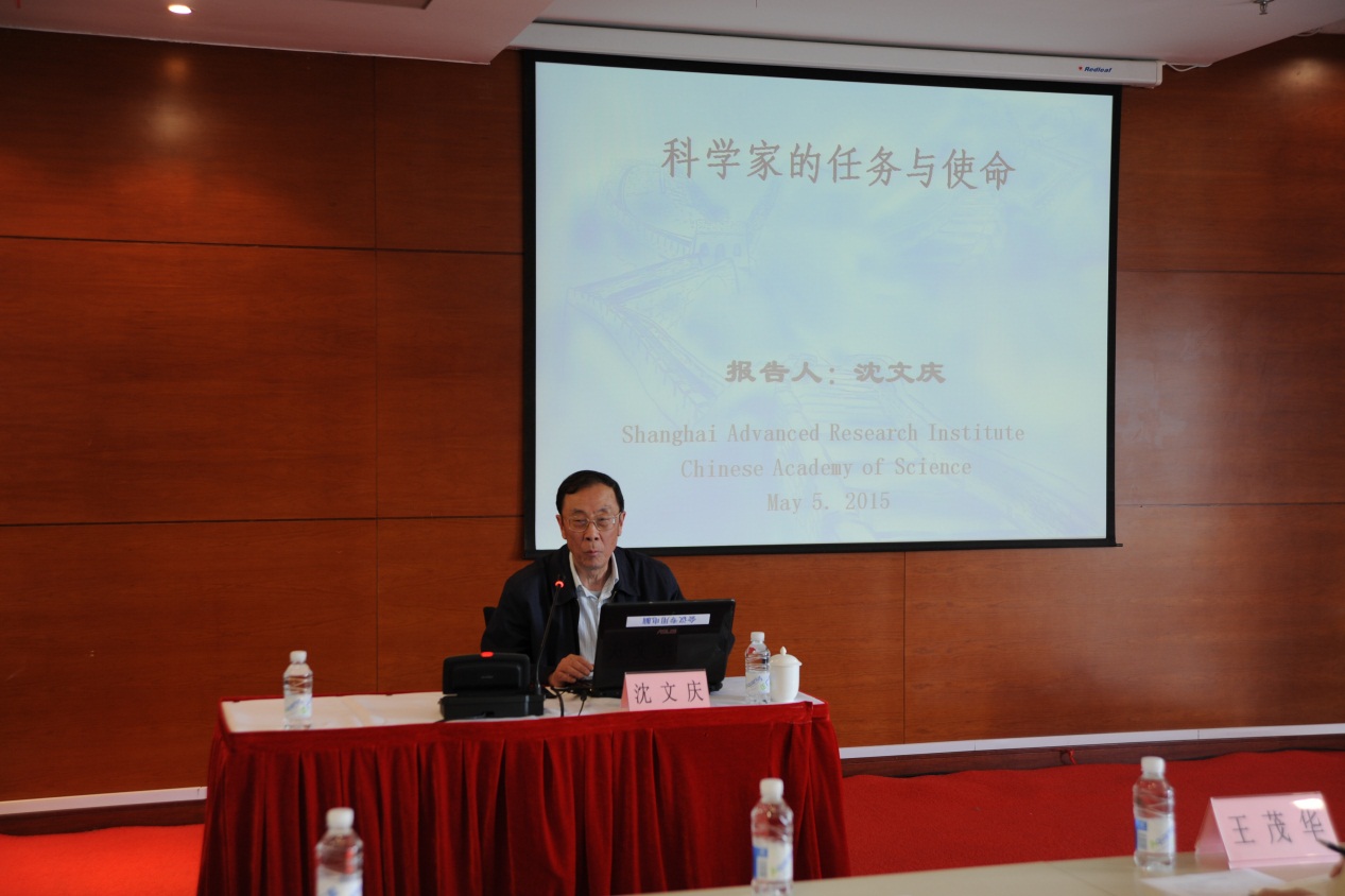 5月5日下午,原国家自然科学基金委员会副主任、原中科院上海分院院长、原上海市科协主席、中国科学院院士沈文庆到中科院上海高等研究院(简称上海高研院)作科研诚信与学风建设专题讲座。各中心科研骨干、各职能部门工作人员约110人聆听讲座,讲座由上海高研院党委副书记、纪委书记王茂华主持。