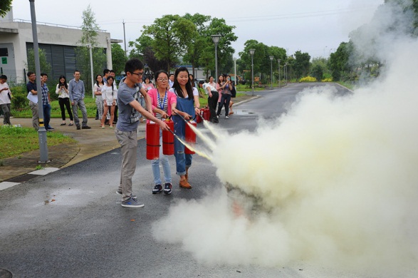 培训最后,新员工还参加了灭火器实际操作演练,在各位新员工全情演练中,2015年度新员工入职培训完满结束。