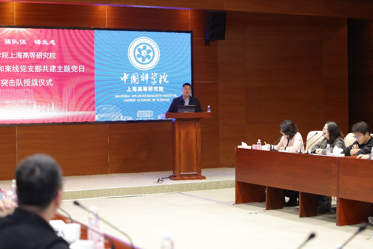 2025年1月30日下午,中国科学院上海高等研究院召开上海高研院绿色化学党支部和束线党支部开展共建主题党日暨攻关突击队授旗仪式。党委书记陈丰伟,院务委员、党委委员、绿色化学党支部书记李久盛,线站党总支书记肖体乔,束线党支部书记金利民出席会议,会议由党建人才工作部部长沈芳菲主持,绿色化学党支部和束线党支部40余位党员参加会议。