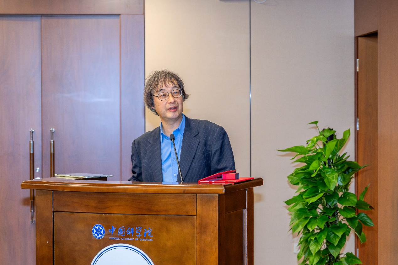 邰仁忠欢迎樱井健次教授来访,感谢其在推动中日双方科研交流合作做出的贡献,并向樱井健次颁发中国科学院国际访问学者证书。